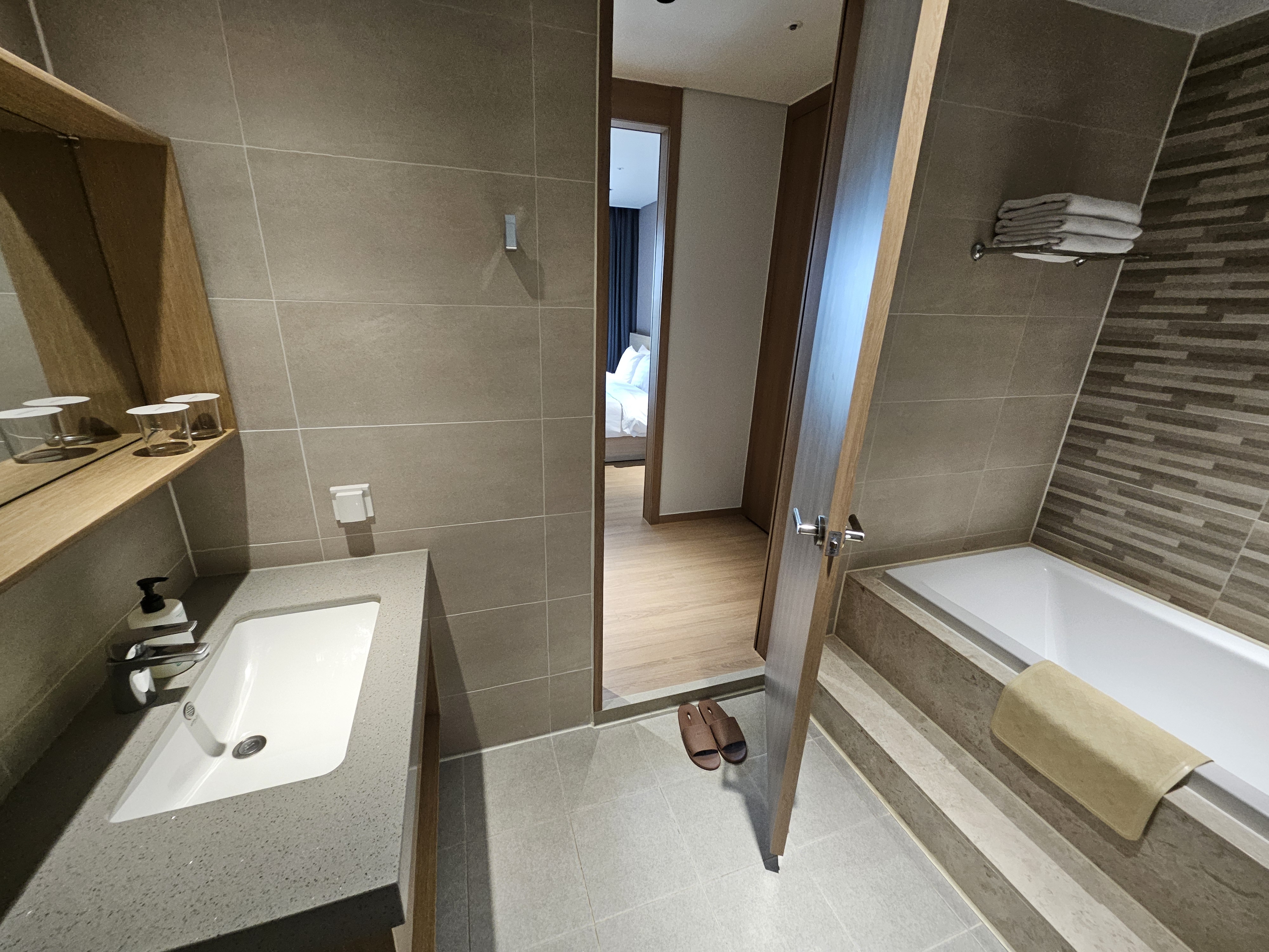 - 형태: 방 2개, 욕실 2개, 거실 포함된 레지던스형 숙소